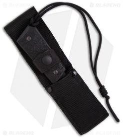 - Black G-10 handle with a lanyard hole and a liner lock mechanism.