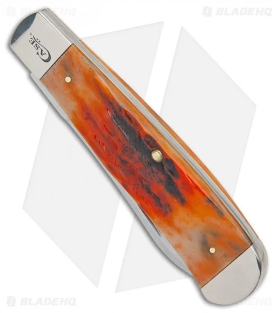 This Backpocket pocket knife from Case Cutlery is outfitted with a Deep Canyon Autumn Bone Jig handle. It features a Tru-Sharp surgical stainless steel blade with a sharp, durable edge that will easily manage any daily cutting chore. The orange bone scales offer a classic look and a comfortable grip. Polished nickel silver bolsters and brass pins and liners finish off this collectible Case knife.