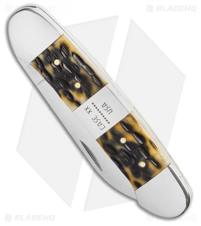 Case Copperhead Pocket Knife 3.875″ Peach Seed Jig Amber Bone 30091