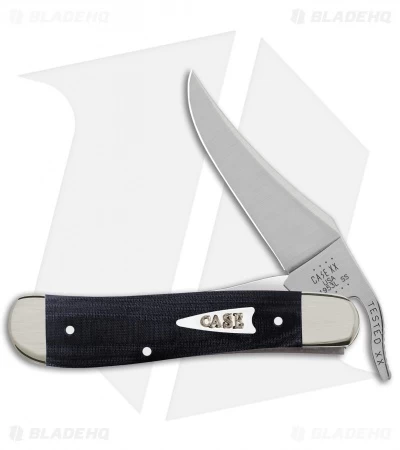 This collectible Case pocket knife offers a classic Russlock design with a 2.75″ clip point blade. The blade is made from stainless steel with a plain edge and a satin finish. This Russlock model has a black Micarta handle with nickel silver bolsters and a Case inlay shield.
