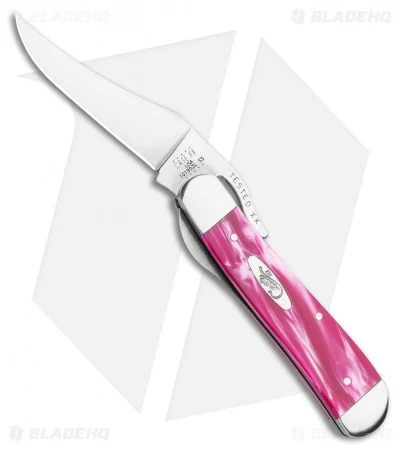 This collectible Case pocket knife offers a classic Russlock design with a 2.75″ clip point blade. The blade is made from stainless steel with a plain edge and a satin finish. This Russlock model has a Pink Pearl Kirinite handle with nickel silver bolsters and a Case inlay shield.