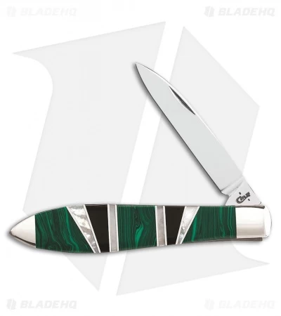 The Case Tear Drop pocket knife with green scales is a fantastic addition to any collection. Tru-Sharp surgical stainless steel long spear blade is capable of any of your daily cutting tasks. The exotic green Malachite scales joined with layers of genuine Mother-of-Pearl and Jet Stone make this knife simply stunning. Polished nickel silver bolsters with brass pins and liners complete this beautiful and unique knife.