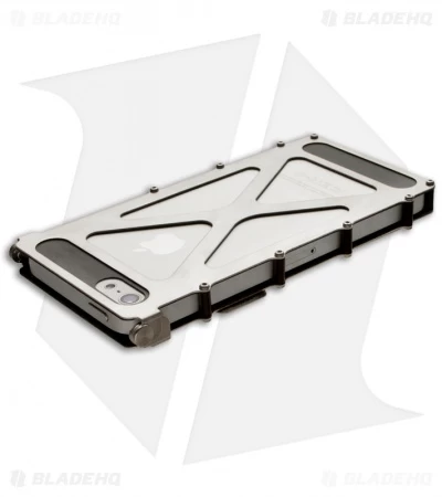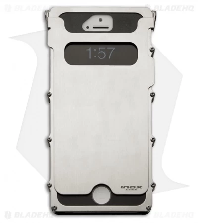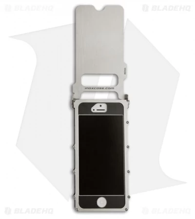 The iNoxCase fits the iPhone® 5. The case is stainless steel construction and hardware with access to all ports and buttons with lid open or closed. The cutout in the visor lid allows views of time and incoming calls. The lid has an elastic band handy for money or credit cards. Designed with maximum clearance for input devices and chargers.