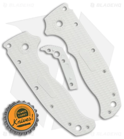 The Demko Knives AD20.5 is a super hot design with killer action and Demko’s exciting Shark Lock. Now, with this set of white grivory replacement scales (and backspacer) you can customize your AD20.5 like never before! These white scales are perfect for dying to whatever color, or combination of colors, you want to match your style.