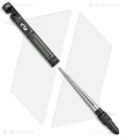 The Gatco Scepter II is a convenient design with multiple tools stored in one easy to carry tool. It features tungsten carbide sharpening elements for fast resharpening of all knives. It has a removable (threaded) tapered diamond rod for re-sharpening serrated blades and a magnesium fire starter rod for emergency use. This light weight and compact tool is perfect for hikers, bikers, campers, hunters, fishermen (and ladies), police and military professionals.