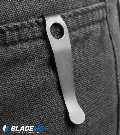 This Short Ti Spyderco Pocket Clip is made from titanium in a sandwashed finish.