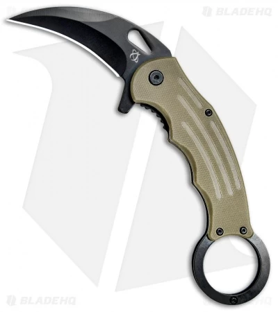 This tan Karambit folding knife from Mantis is built with an ergonomic profile and snappy spring assisted action.