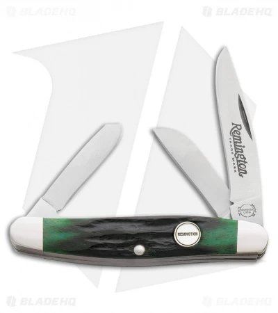 - Green jigged bone with nickel silver bolster and Remington inlay.