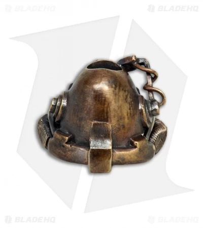 This Apocalypse Gas Mask lanyard bead from RUS Beads Shop is made from bronze with intricate handmade detail. The bead features a large opening to hide lanyard knots. Add this custom bead to your knife, zipper pull, or other EDC accessories to truly make them your own.