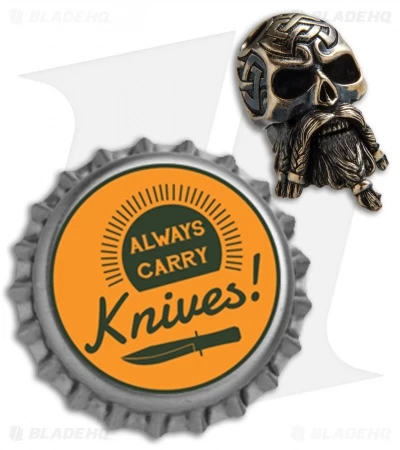 This Viking Skull lanyard bead from RUS Beads Shop is made from bronze with intricate handmade detail. The bead features two angled holes on either side of the head, a large opening to hide lanyard knots, and a hinged moving lower jaw. Add this custom bead to your knife, zipper pull, or other EDC accessories to truly make them your own.
