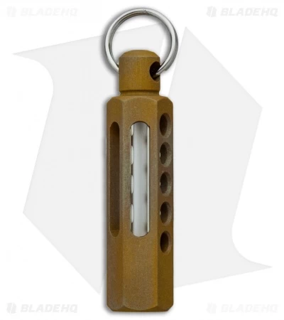 The Brass Hex Tritium Lantern from Spalinger Gear is an affordable accessory with a simple and elegant design. This model comes in a blasted and torched finish. Harley Spalinger incorporates tritium with finesse into this solid brass cylinder bead. It comes attached to a stainless steel mini clip that’s easy to attach to zipper pulls, key chains, or gear bags.