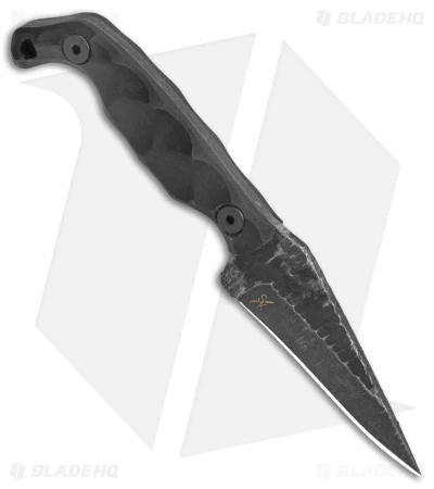 - Black stonewashed, hammer-finished modified drop point blade made from high carbon 1095 steel.