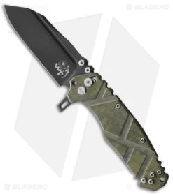 - Black DLC-finished sheepsfoot blade made from D2 tool steel.